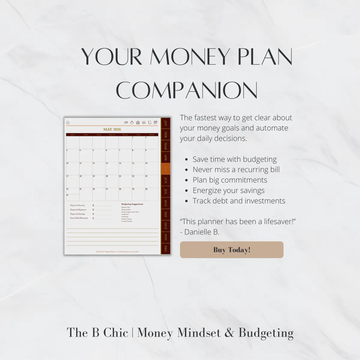 You may be using the wrong tools or simply not working WITH your personality type to make saving work for you. There IS a way to make savings work for you in the long-term and this planner helps.