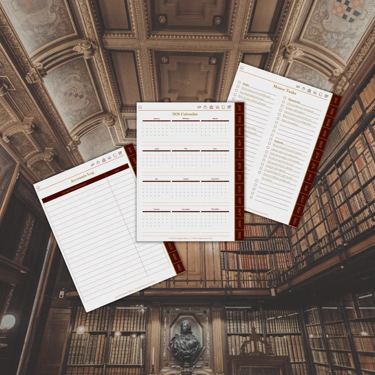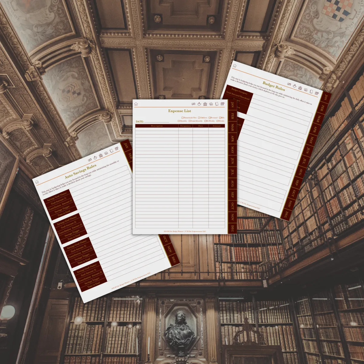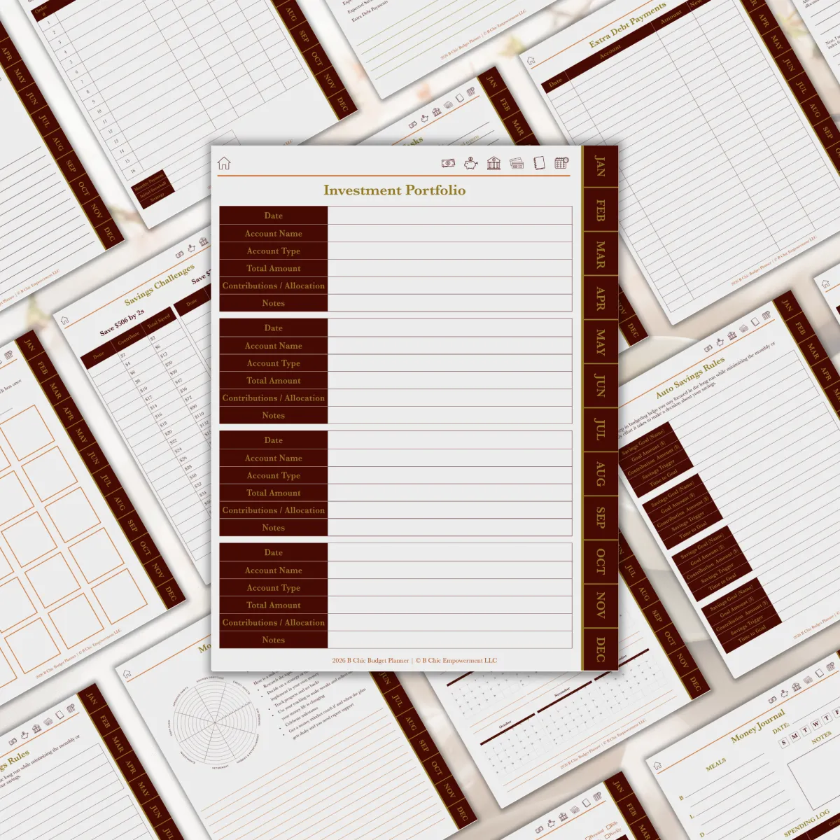 Start your budgeting journey by gaining awareness of the most important factors that affect you on a regular basis. Auto-payments, credit cards and their interest rates, and even your bank account’s basic information. Having the important stuff in one place gives you the first step in getting clarity on your money situation. The daily and weekly money journal also gives you a glimpse of your spending habits and patterns.